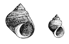 On muddy shores the eel-grass (Zostera marina) grows abundantly, giving an appearance of submerged meadows. It is one of the very few flowering plants which live in salt water. In summer its little green blossoms may be seen in grooves on the leaf-like blades. Many animals live on and among eel-grass. Found upon it is the delicate gasteropod mollusk Lacuna vincta, and its eggs in little rings; the iridescent Margarita helicina, and Nassa, with its bright-yellow eggs in small gelatinous masses; also little worms (Spirorbis) in tiny flat spiral shells, compound ascidians in jelly-like masses, clusters of shelly or horny polyzoans, isopods, planarian worms, and so on. Scallops (Pecten) will be found at the base of the plants, and the common prawns are very numerous, swimming freely about. Mud flats and shores are the homes of many mollusks, especially of Nassa obsoleta,—which is the most abundant shell of any considerable size from Cape Cod to the Gulf of Mexico,—and of vast numbers of the tiny Littorinella minuta, which serve as food for fishes and aquatic birds. Clams and worms of all varieties are also abundant.