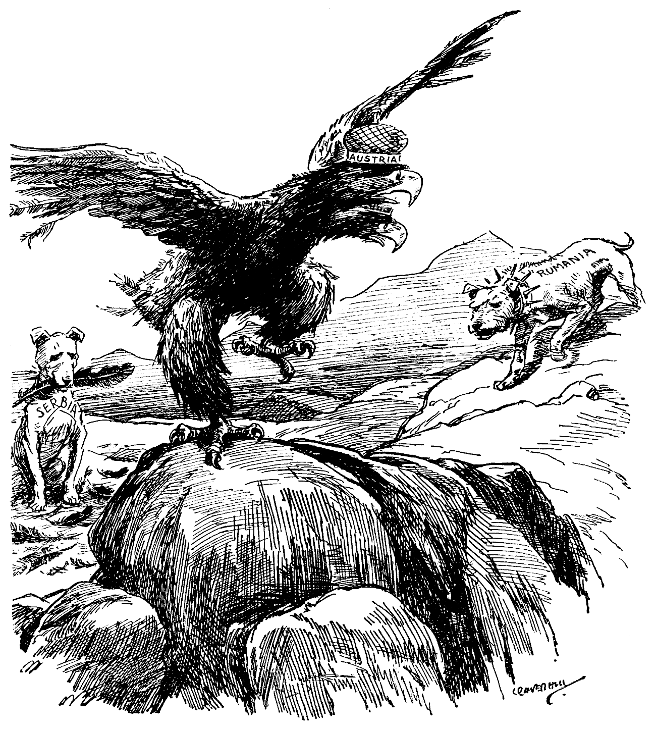 "Fourteen Roumanian destroyers from the Austro-Hungarian army arrived at Sinaia, Roumania, having crossed the Transylvanian Mountains on foot."—Bombay Chronicle.