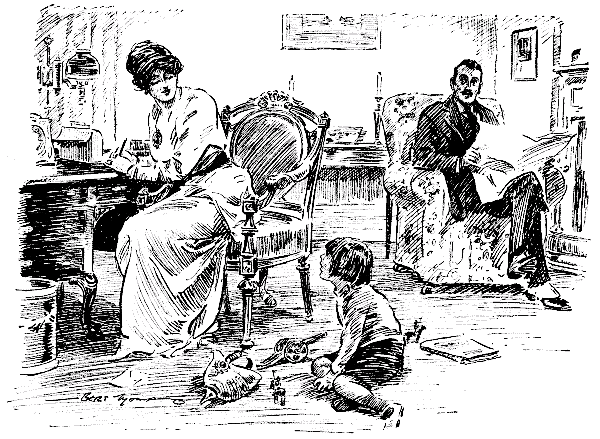 "The 'first'!" he said scornfully. "The 'first'! She and her mother on that," he chuckled, "and my mother to help them! (We live close by). My, I wish I could be there to hear it. Give it me back, please; I must mark it and post it. What a time they'll have!"