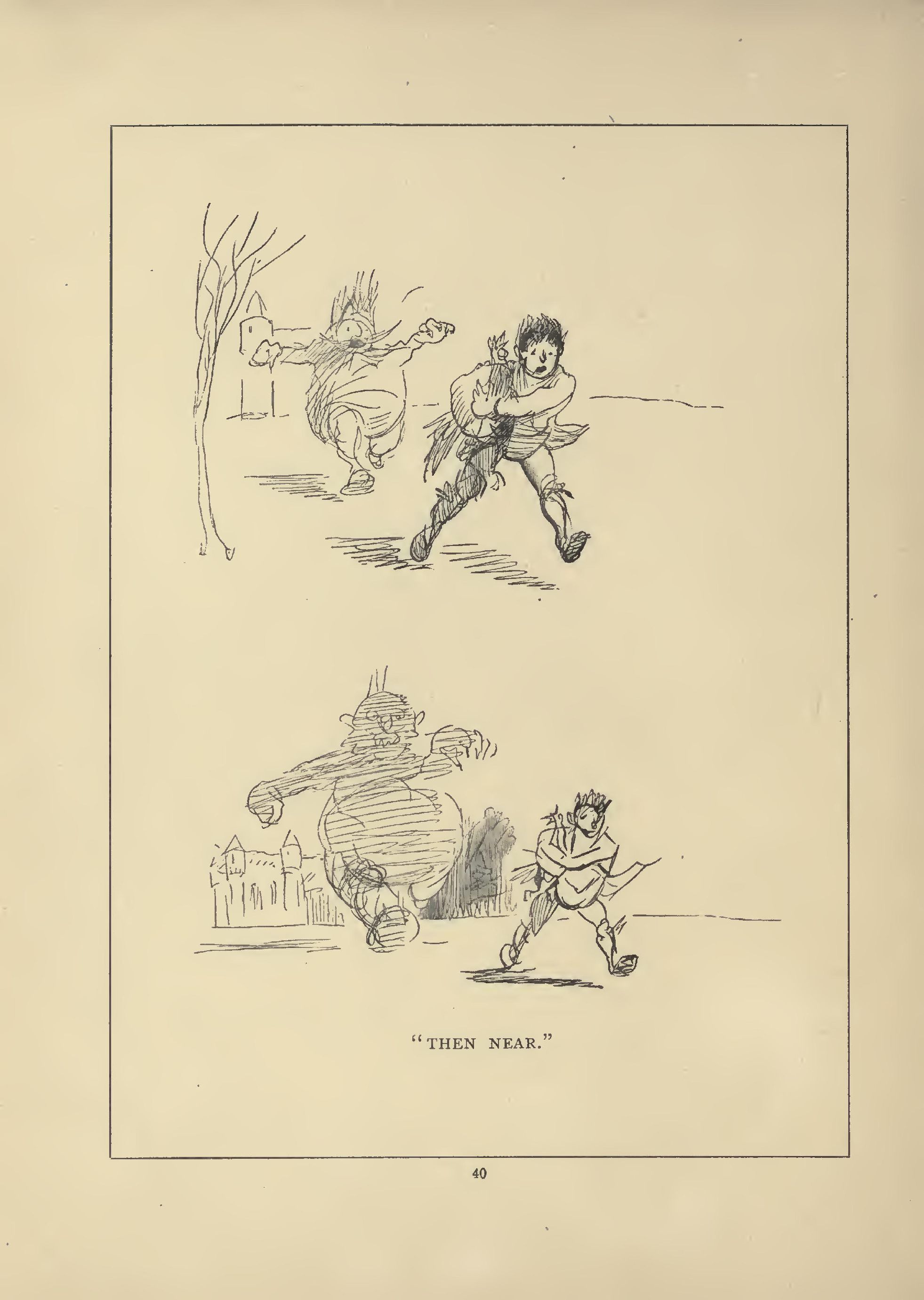 In his last letter to me Caldecott wrote: 'I have been making several attempts at the Giant, and have been cogitating over the Illustrations to "Jack" generally. During the winter I shall be able to show you some of my ideas.' The following unfinished Sketches are the 'ideas,' which, with Mrs. Caldecott's kind permission, have been reproduced.