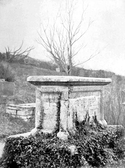 The whole passage from Mr. Baring-Gould is as follows: “The ancient piscina in the wall is of early English date. Mr. Hawker discovered under the pavement in the church, when reseating it, the base of a small pillar, Norman in style, with a hole in it for a rivet which attached to it the slender column it supported. This he supposed was a piscina drain, and accordingly set it up in the recess beside his altar.” Mr. Baring-Gould evidently uses the word “piscina” as meaning the whole “recess” beside the altar. Mr. Chope appears to use it for the pillared structure within the recess. Hawker’s own words seem to show that he found the whole piscina, i.e. the recess with the drain inside it, “in the chancel wall.” He says nothing of any discovery “under the pavement,” and Mr. Baring-Gould does not give his authority for this statement.