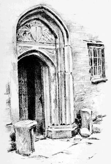 [100] The remains of this old building have been embodied in some cottages. The doorway shown in the illustration forms the front door of one of these. The other is occupied by the Cornwall County Police, and the unsuspecting pilgrim who rambles round without permission is liable to be startled by the gruff remark, “You’m trespassing!” Thus are we recalled from “the baseless fabric” of the past to the stern realities of the living present.