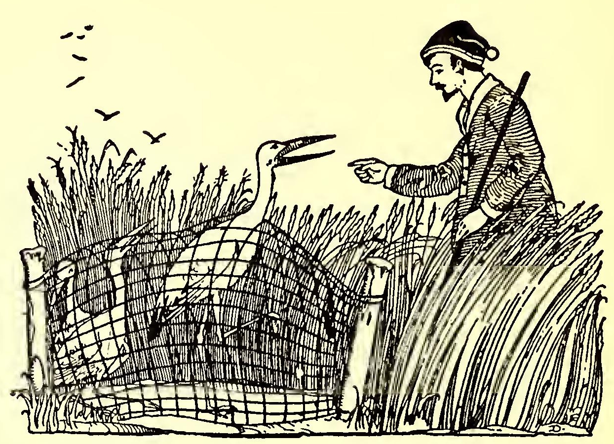A Wolf once had a bone stuck in his throat, and offered to pay the Crane well if she would thrust her long bill down and draw the bone out.