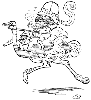 My weapons and my sporting togs are always at hand, packed for travelling at the shortest possible notice. And here let me remark to you that, when you were in the desert, had you been armed with my patent revolving, twenty-times-a-second, double-action repeating rifle, the strange story of the conflict between yourself and the ostrich would have been utterly impossible. Excuse me, Sir, but, as it is, I consider it scarcely within the bounds of probability. I know probability will take big bounds, and I'm a bit of a traveller myself, but your escape uninjured from that wild bird, and the escape also of Toby, who is not a sporting dog, is one of the strangest tales on record, by the side of which, perhaps, even the daring exploit, which I am now about to narrate as a plain unvarnished tale, may seem a mere ordinary, every-day occurrence. But to proceed.