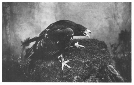 He had but one care. His mate, who had built and lived with him for five long years, had disappeared a month before, and he could find no trace of her. In vain he had travelled as far as Caithness on the east, and to Foula among the Shetlands in the north, and down south as far as Perthshire, screaming the old love-cry as he went that she might hear and answer him. She had left the eyrie as usual one morning; they never hunted together, and he had not seen her again. Nor would he, for she had failed to find food and had been tempted by carrion. The carrion—a dead chicken—covered a steel fox-trap, and though, in her frenzied fight for liberty, she had torn the controlling staple from the ground, a keeper had passed within shot before she could get clear of the wood, and now her skin was being stuffed by a Perth taxidermist, and she would presently appear under a glass case in the hall of the shooting lodge by the loch side.