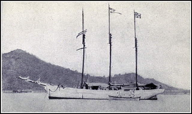 Taking no one with me, I got into the steam launch and went out to the schooner to learn whether she was at all seaworthy. The captain and a single sailor were aboard her. Of the former I inquired casually whether he had any ammunition aboard, for I did not wish him to suspect the real purpose of my coming. He said there was none, and a brief inspection of the ship led me to believe that she was still seaworthy. Consequently I sent my officers and men aboard the Ayesha to get her into trim for sailing.