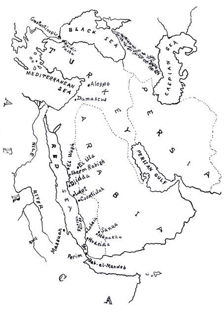 I had brought with me from Hodeida an English-speaking Arab. During the course of the night, as soon as the moon had risen, I sent this man to Djidda, only a ten hours’ march by camel distant from us, and only eight by foot. I had found him to be a very reliable and sensible man, and, as I learned later, he succeeded in making his way through the enemy’s lines, and took the report of our perilous situation to the military authorities at Djidda.