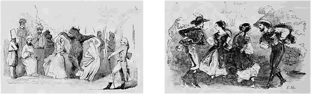 Le ministre, consterné, court revêtir l'habit hongrois et revient avec... devinez qui? avec Cellarius! le véritable Cellarius, suivi de ses deux charmantes sœurs. Il faut rendre justice au ministre, il a dansé de manière à justifier l'ordre absolu de Schahabaham. Rien de plus ravissant que cette polka dansée par le grand professeur et l'un de ses meilleurs élèves; les yeux les suivaient dans les dessins ingénieux dus à l'invention de Cellarius, et ne se lassaient pas d'admirer cette danse toute nouvelle pour eux, malgré les essais nombreux tentés par des amateurs plus zélés qu'habiles; aussi les applaudissements duraient encore que déjà le théâtre avait disparu et que les quadrilles étaient formés pour suivre l'exemple donné par Cellarius. La polka précéda! et suivit la valse; la modeste contredanse fut un peu négligée; le souper, bien que délicieux, ne fut qu'un entr'acte, un moment de repos entre deux études, et pourtant Odry raconta la touchante histoire d'un meunier qui avait trois fils et trois moulins qu'il adorait; histoire dont chacun se rappellera en souriant la consolante conclusion, la morale du meunier à ses moulins, à savoir qu'il vaut mieux être honnête que d'être pauvre, et ses conseils à ses fils, qu'il vaux mieux chômer que mal moudre.