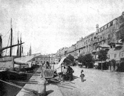 Ich habe ein sehr nettes Buch mit: Dalmatia, the land where East meets West by Maude M. Holbach. Die brave alte Engländerin, die es geschrieben hat, durchaus im frömmsten Glauben an unsere Behörden, reißt die Augen auf, wie sie hinter die weiße Wand in die alte Stadt Zara kommt, und ruft aus: This is no more Europe, no matter what the map may tell you! Und dann, wie sie die Morlaken auf dem Markt erblickt, mit den dunklen Gesichtern in weißen Tüchern, die rußigen Hände schwer beringt, die Füße in Opanken: At the first glance they seemed to me more like North American Indians than any European race! Ganz erschreckt staunt sie und kann es kaum begreifen, so fremd ist dieses Land!