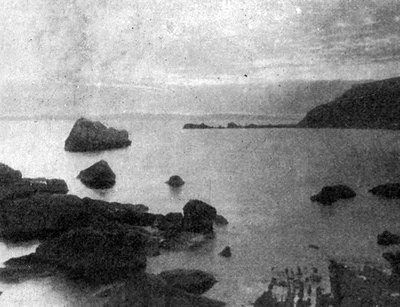 Ich gehe dann, auf der Höhe, einen wunderschönen einsamen Weg durchs Gestein, den entzückten Blick auf Miramar und über das schäumende Meer hin, nach dem weinberühmten Prosecco und von dort nach Barcola hinab. Auf dem Meer verlischt der Tag, alles ist plötzlich groß und still geworden, ein ungeheurer Ernst steht auf der grauen Bahn der verstummten Bucht. Manchmal rollt ein Stein aus den Dolinen los, durch das ungeheure Schweigen.