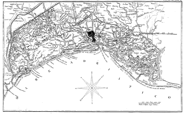 On ajouta à ces dispositions en 1367, que dans les conseils le doge ne pourrait jamais être d'un avis contraire à celui des avogadors; parce que ceux-ci étaient spécialement chargés de voter pour l'intérêt de la république. On descendit jusqu'à des soins minutieux pour lui imposer (p. 43) des entraves. On fixa la somme à mettre à sa disposition pour la réception des étrangers de marque, et il fut réglé que cette somme ne pourrait excéder mille livres par an. On ajouta que, dans les six premiers mois de son élection, il serait obligé de se faire faire au moins une robe de brocard d'or, qu'enfin, ni lui, ni ses enfants, ni sa femme, ne pourraient recevoir aucun présent, tenir aucun fief, ni cens, ni emphytéose, posséder aucun immeuble hors des limites du duché et que s'ils en possédaient ils seraient obligés de les vendre. Or si on considère que le territoire appelé le Dogado ne comprenait que la capitale, les îles de Malamocco, de Chiozza et de Brondolo et une lisière de côtes depuis l'embouchure du Musone vis-à-vis Venise, jusqu'à celle de l'Adige, on reconnaîtra que les familles puissantes qui pouvaient prétendre à cette suprême dignité, s'imposèrent à elles-mêmes une notable gêne, en s'interdisant toutes possessions hors de ces étroites limites[11].