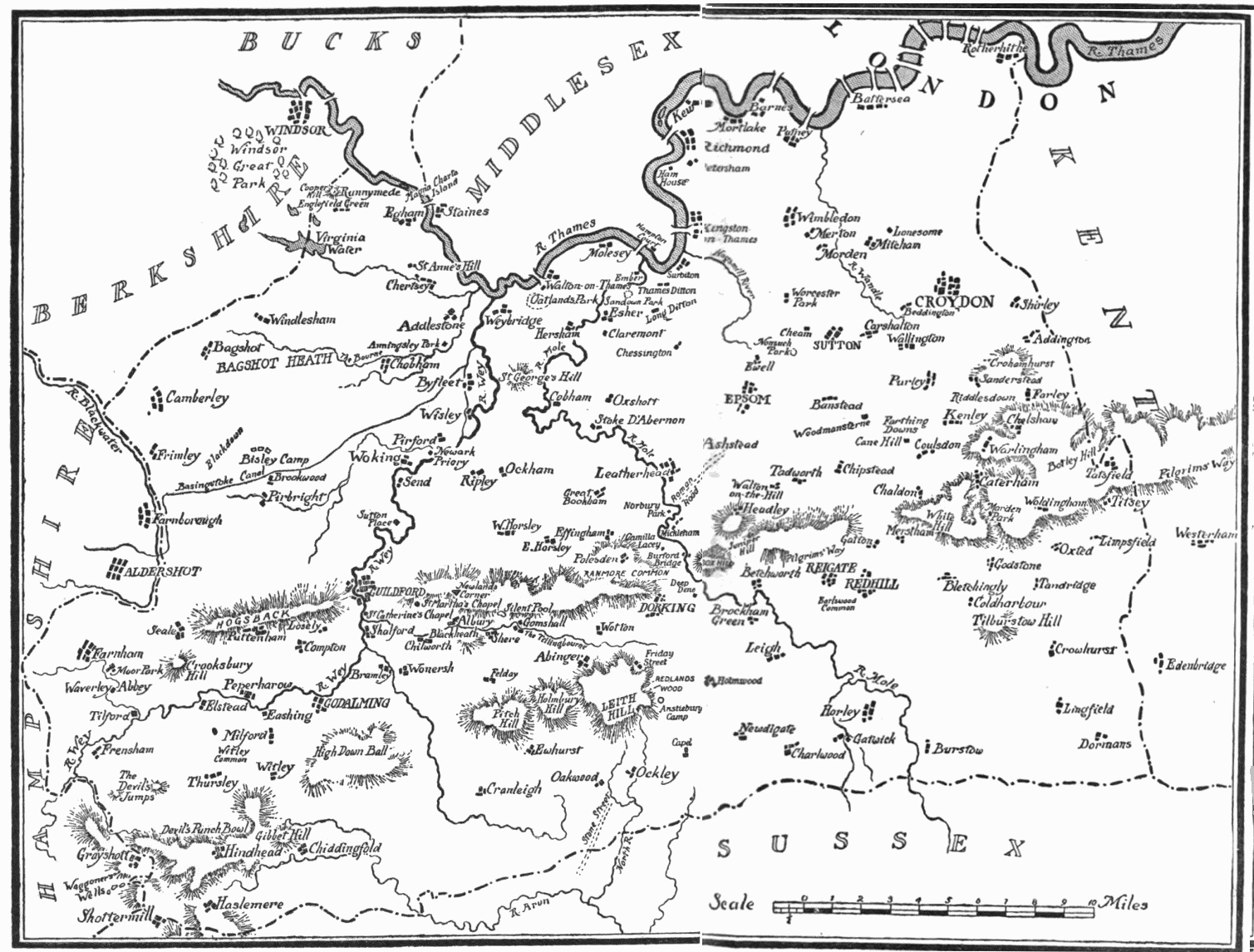 SURREY’S crooked northern border is washed by the Thames, “great father of the British floods,” to whom so many compliments, vows, and addresses have been offered in prose and verse:—