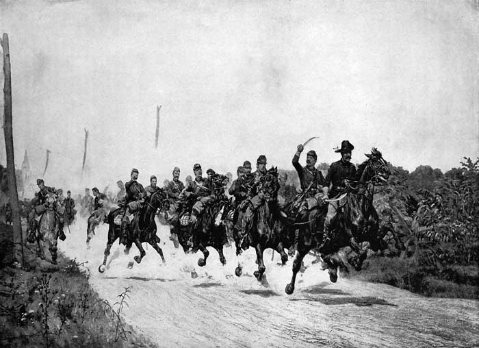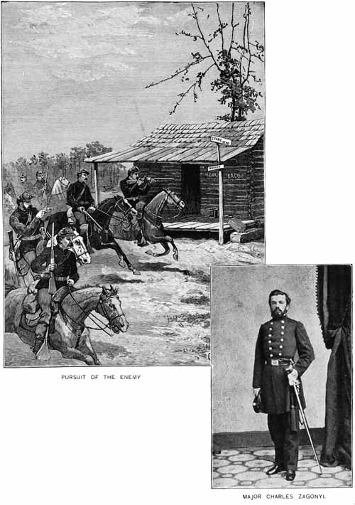 The whole trouble was caused by Colonel Morgan, with a couple of cavalry regiments, and a clever telegraph operator [p. 532]named Ellsworth. Ellsworth tapped the wires between Nashville and Louisville, and sent a bogus despatch to the Union authorities in the latter city, stating that Morgan was operating around the former, when, in reality, he was riding northward toward the heart of Kentucky. Moving along the railroad lines, Union operators were everywhere surprised at their keys and compelled to serve the raider's commands, while Ellsworth manipulated the wires. In this way the Union forces ahead on the line of march were ordered out of the road, or drawn off by false alarms, and Morgan was able to get exact knowledge as to the location and numbers of the Union garrisons. At Georgetown, only sixty miles from Cincinnati, he halted for two days, producing, by means of the wires, a terrible scare in Lexington, and drawing all the Union forces to that region. He himself then moved southward to cross into Tennessee, Ellsworth managing to counteract the Union orders for pursuit during the retreat by his bogus telegrams. So the raiders finished their long ride without once encountering an armed foe.