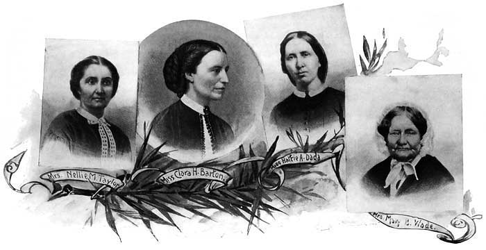 Miss Clara Davis, of Massachusetts, was one of the earliest volunteers, and she was so assiduous in her labors and so cheerful in her manners in the hospital that the soldiers came to look upon her with most profound admiration and affection. One of them was heard to say, "There must be wings hidden beneath her cloak." Her labors were mainly with the Army of the Potomac, and she continued them until an attack of typhoid fever made further work of the kind impossible.