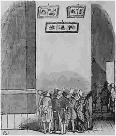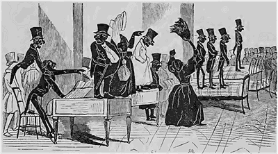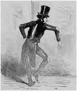 Cependant les voici tous quatre qui entrent en scène; les frais de cette entrée ne sont pas considérables; avec quatre chaises, on fait l'affaire; or, les chaises étant généralement faites pour s'asseoir, nos ménestrels y sont bientôt assis; l'un racle du violon, l'autre d'une espèce de guitare, le troisième agite des petits bâtons en forme de castagnettes, et je ne sais plus ce que fait le quatrième, pas grand'chose, j'imagine, à l'exemple de ses trois confrères. Pour rehausser l'agrément de cet orchestre baroque, nos nègres faux teint baragouinent des chansonnettes dont la plus courte et la plus agréable semble lutter de monotonie et de longueur avec la complainte du Juif errant; ces chansons se donnent pour écrites en pure langue de l'Ohio, mais la vérité est que c'est du picard tout franc; cela chanté, un des quatre ménestrels se met à remuer la tête, puis à danser une danse qui rappelle à s'y méprendre le sautillement d'un frotteur qui donnerait un coup de brosse à un parquet.--On a rarement vu une mystification plus complète; c'est comme souvenir de ce puff sans pareil, même dans ce siècle du puff par excellence, que nous avons cru devoir recueillir l'image de ces étonnants ménestrels et les mettre sous vos yeux, chers abonnés.--Ne touchez pas à ces nègres, vous vous noirciriez les doigts.