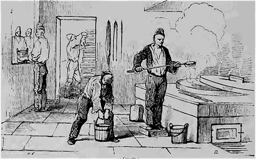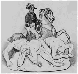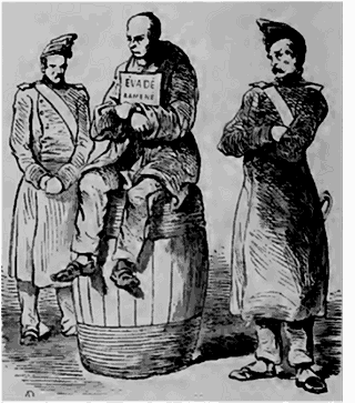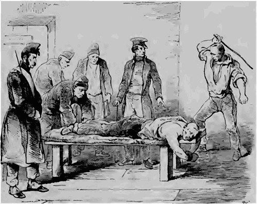 Une inscription placée au-dessus de la porte du corps de garde relate que près de là, et adossé contre le mur, il existait jadis un mortier de marbre dans lequel on pilait les condamnés à mort.--De pauvres soldat; ivres, coupables seulement de désertion, ont subi cet horrible supplice; c'est du moins ce qu'ajoute l'inscription.