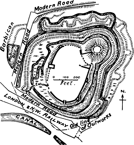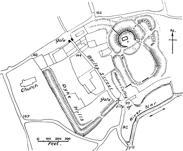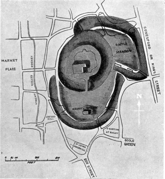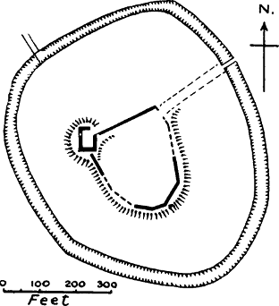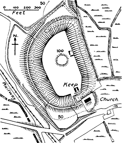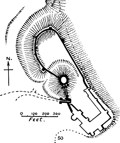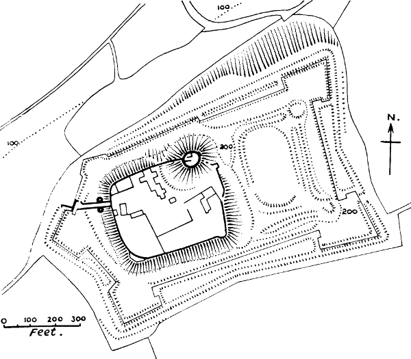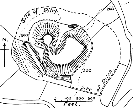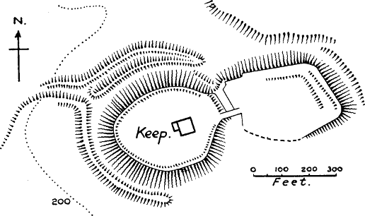 The study of earthworks has been one of the most neglected subjects in English archæology until quite recent years. It may even be said that during the first half of the 19th century, less attention was paid to earthworks than by our older topographical writers. Leland, in the reign of Henry VIII., never failed to notice the “Dikes and Hilles, which were Campes of Men of Warre,” nor the “Hilles of Yerth cast up like the Dungeon of sum olde Castelle,” which he saw in his pilgrimages through England. And many of our 17th- and 18th-century topographers have left us invaluable notices of earthworks which were extant in their time. But if we turn over the archæological journals of some fifty years ago, we shall be struck by the paucity of papers on earthworks, and especially by the complete ignoring, in most cases, of those connected with castles.