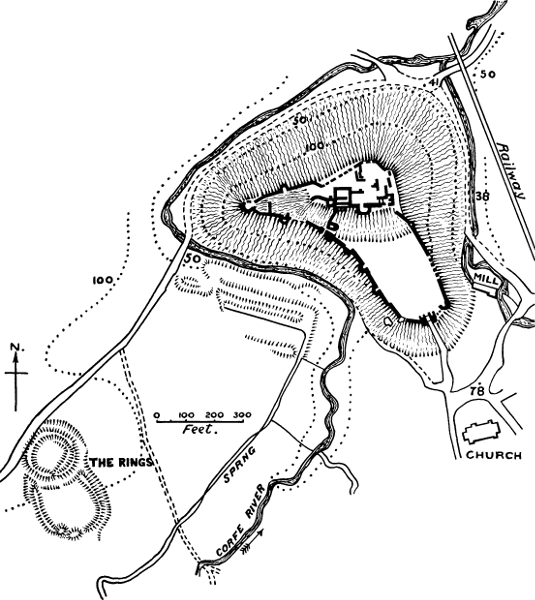 [1156] The first castle at Corfe was built by William’s half-brother, Robert, Count of Mortain. The keep of Corfe is sometimes attributed to him, but when we compare its masonry with that of the early hall or chapel in the middle bailey, we shall see that this date is most unlikely. Norwich was always a royal castle.