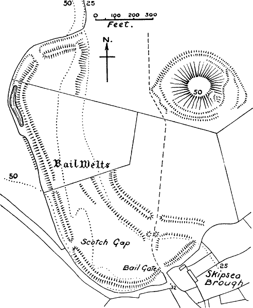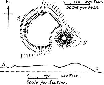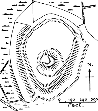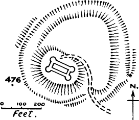 This classification, it will be observed, makes no attempt to decide the dates of the different types of earthworks enumerated. But a great step forward was taken when these different types were separated from one another. There had been no greater source of confusion in the writings of our older antiquaries, than the unscientific idea that one earthwork was as good as another; that is to say, that one type of earthwork would do as well as another for any date or any circumstances. When it is recognised that large classes of earthworks show similar features, it becomes probable that even if they were not thrown up in the same historic period, they were at any rate raised to meet similar sets of circumstances. We may be quite sure that a camp which contains an area of 60 or 80 acres was not constructed for the same purpose as one which only contains an area of three.