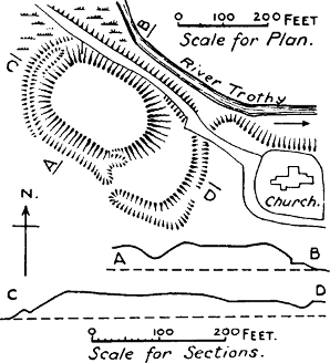 We are not concerned here, however, with the[Pg 4] attempt to disentangle the dates of the various classes of prehistoric earthworks.[3] Such generalisations are for the most part premature; and although some advance is being made in this direction, it is still impossible to decide without excavation whether a camp of class (a) or (b) belongs to the Stone Age, the Bronze Age, or the Iron Age. Our business is with classes (d) and (e) of Mr Gould’s list, that is, with the moated hillocks. We shall only treat of the other classes to the extent which is necessary to bring out the special character of classes (d) and (e).