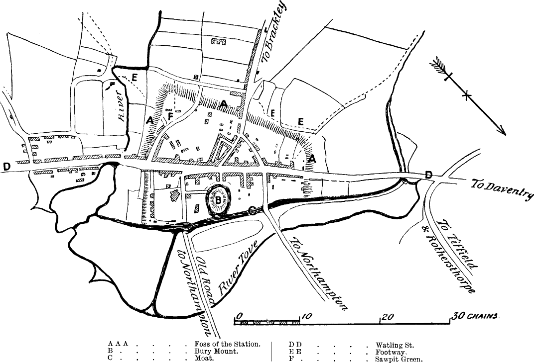 The writer does not claim to have originated this theory. Dr Round was the first to attack (in the Quarterly Review, 1894) the assertion of the late Mr G. T. Clark that the moated mound was a Saxon castle. Mr George Neilson continued the same line of argument in his illuminating paper on “The Motes in Norman Scotland” (Scottish Review, vol. xxxii., 1898).[1] All that the writer claims is to have carried the contention a stage further, and to have shown that the private castle did not exist at all in Britain until it was brought here by the Normans.