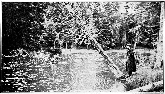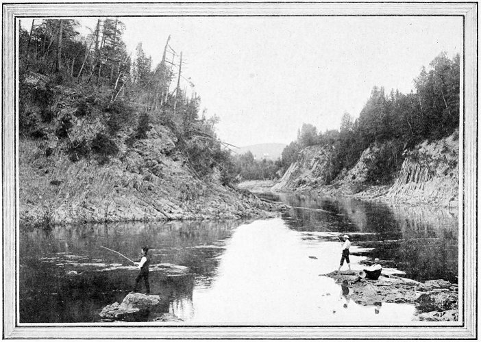 The power of wealth is felt in the angling world, just as in other departments of life, and hence the most of the best fishing rights have been bought up by wealthy men and reserved for their own use and that of their friends and summer guests. But there are many places where the best of fishing may be had by previous arrangement, and other places, such as the *Charlo River in New Brunswick, where royal fishing may be enjoyed without permit other than the usual fishing license. The best plan is to read through “Summer Provinces by the Sea” so as to become acquainted with the country as a whole, and, after a district has been chosen, a letter of inquiry to the nearest Intercolonial Station Agent will elicit the latest and most accurate information on the fishing of the neighborhood. The “Fishing and Hunting” booklet issued by the Intercolonial Railway contains much valuable information relating to the fishing streams of the four provinces. This booklet will be forwarded from the offices of the Intercolonial Railway, Moncton, N.B., on application.