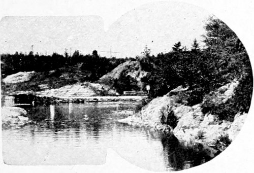 The Mira River district, half-way down the coast towards Louisbourg, abounds in picturesque views; and a journey over the beautiful river, with its remarkable clear water, is a veritable treat. An old French shipyard was once here, some remains of which are still visible; and the hulls of many small craft may be seen below water. The course leads through a ravine that is sheltered from the sun for most of the day, the coves and small headlands of which give many pretty views. Pleasant fishing streams and brooks empty themselves along the course of the Mira River, and numerous evidences of the early French days are seen as the upper waters are reached. Pleasant islands, also, vary the way, some of them in picturesque clusters. A number of inviting-looking bays and several villages are passed, and as Marion Bridge is gained the country becomes more hilly and varied. Salmon River, which empties into the Mira, is a favorite fishing stream, and, in addition, it offers many beautiful views. Near the head of Mira River is Victoria Bridge, from which pleasant drives may be taken to Gaberouse on the bay of that name, to Framboise, and to Fourché, all quiet fishing villages remote from travel highways, and on that account interesting to see.