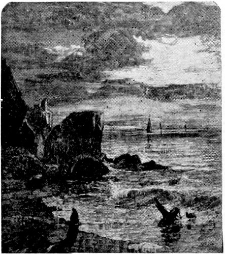 “Seeing so many around, we decided to try for another. The fishermen, however, hesitated about supplying us with bait, fearing a repetition of the peril if we hooked another. After coaxing, we got what we wanted and started off again, throwing herrings as we went. When we thought ourselves well out we stopped to make ready for another strike.
