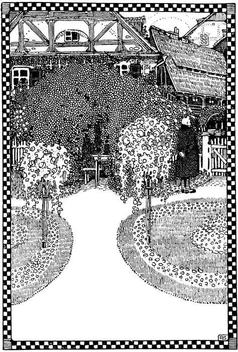 Das Wohnhaus, das zu dem Gärtchen gehört, sieht nicht nach allen Seiten so geschmückt aus, als nach der Hauptstraße hin. Hier sticht eine blaß rosenfarbene Tünche nicht zu grell von den grünen Fensterladen und dem blauen Schieferdache ab; nach dem Gäßchen zu, die Wetterseite des Hauses, erscheint von Kopf zu Fuß mit Schiefer geharnischt; mit der andern Giebelwand schließt es sich unmittelbar an die Häuserreihe, deren Beginn oder Ende es bildet; nach hinten aber gibt es einen Beleg zu dem Sprichwort, daß alles seine schwache Seite habe. Hier ist dem Hause eine Emporlaube angebaut, einer halben Dornenkrone nicht unähnlich. Von roh behauenen Holzstämmen gestützt, zieht sie sich längs des obern Stocks hin und erweitert sich nach links in ein kleines Zimmer. Dahin führt kein unmittelbarer Durchgang aus dem obern Stock des Hauses. Wer von da nach der „Gangkammer“ will, muß aus der hintern Haustür heraus und an der Wand hin wohl sechs Schritt an der Hundehütte vorbei bis zu der hölzernen, hühnersteigartigen Treppe, und wenn er diese hinaufgestiegen, die ganze Länge der Emporlaube nach links wandeln. Der letzte Teil der Reise wird freilich aufgeheitert durch den Blick in das Gärtchen hinab. Wenigstens im Sommer; und vorausgesetzt, die der Länge des Ganges nach doppelt aufgezogene Leine ist nicht durchaus mit Wäsche behängt. Denn im Winter schließen sich die Läden, die man im Frühjahre wieder abnimmt, mit der Barriere zu einer undurchdringlichen Bretterwand zusammen, deren Lichtöffnungen über dem Bereiche angebracht erscheinen, den eine gewöhnliche Menschenlänge beherrscht.