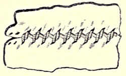 [245] The “finds” here were unimportant, they consisted of a polishing-stone; a dart or arrow-head formed of the carboniferous sandstone of the district; a few sea-shells; some charred bones, principally those of the cow, sheep, pig, and goose—the latter very numerous; hazel nutshells; pieces of chert, off some of which chips seemed to have been struck; small round pebbles of white quartz.—Proceedings R. I. A., vol. x., pp. 31, 33.—G. H. Kinahan.