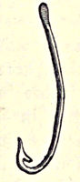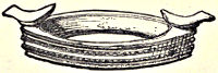 [204] The following is a list of antiquities of minor interest:—A crucible of the usual crannog kind, in a perfect state. A brooch, or fibula, composed of iron, bronze, and a white metal—perhaps silver; it had evidently been prepared for enamel—the pin was eaten away by corrosion. An iron knife, with bronze mounting to the handle, which was pierced for rivets. An ordinary crannog knife-blade, like those found in Anglo-Saxon interments. Portion of a small iron shoe for horse or ass. Piece of an iron band. A thin bronze fillet that might have been used for securing the staves of a small wooden vessel, or intended for a hair-band: a lady who tried it on, pronounced it to be decidedly an article of feminine adornment—let that decide the point! A small article of late bronze, apparently belonging to horse trappings. A whetstone. A worked stone or disc. A lump of iron dross or “slag.” The under stone of a quern. From time to time no fewer than three single-piece canoes have been discovered beneath the waters of the lough; one was for years used as a trough for cattle, and afterwards cut up for firewood; the others were utilized in the roofs of out-offices.—Journal Royal Hist. and Arch. Asso. of Ireland, vol. i. (4th Series), pp. 360, 371.