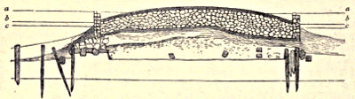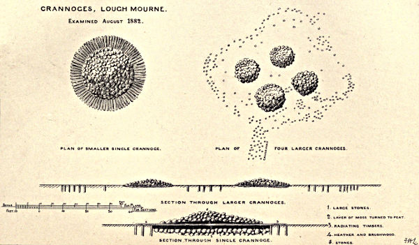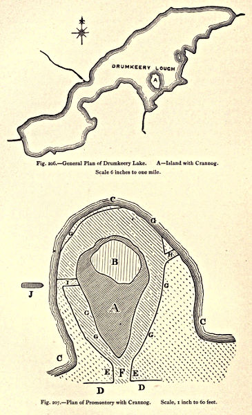| Crannog, derivation of the word; a common townland name. Submarine crannog. Favourite sites for crannogs; mode of construction. Stone lake-dwellings. Theory of crannogs being only temporary refuges untenable. Palisades. Dwellings. Gangways to crannogs. Canoes. Paddles. Anchors. Curach. Ingenuity of lake-dwellers. Clothing, &c. | |