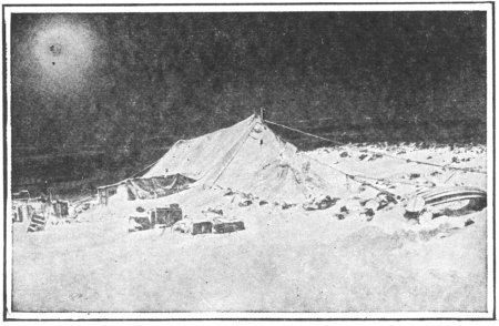 With four companions, Captain Scott on the final dash for the Pole left his main party in camp at Cape Evans, the base of operations on McMurdo Sound. On January 17, 1912, the South Pole was reached at last; but they found to their great amazement that they had been preceded by over a month by Amundsen and his party, who attained the Pole on December 14, 1911. The calculations of the two expeditions located the Pole on nearly the same spot.