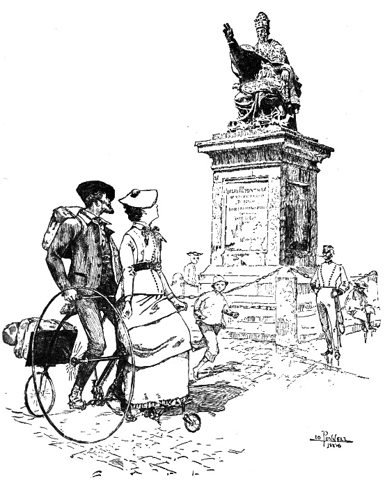We stayed in Florence three days before we started on our pilgrimage to Rome. We needed a short rest. The railway journey straight through from London had been unusually tiresome because of our tricycle. From the first mention of our proposed pilgrimage, kind friends in England had warned us that on the way to Italy the machine would be a burden worse than the Old Man of the Sea; porters, guards, and custom-house officials would look upon it as lawful prey, and we should pay more to get it to Italy than it had cost in the beginning. It is wonderful how clever one's friends are to discover the disagreeable, and then how eager to point it out!