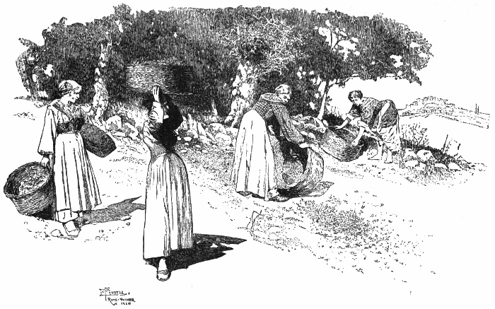 There could be no lovelier lake town than Castiglione del Lago. The high hill on which it stands projects far into Lake Thrasymene. The olives which grow from its walls down the hillside into the very water are larger and finer, [pg 112] with more strangely twisted trunks, than any I have ever seen. As we came near the town we rode between them, looking beneath their silvery-gray branches out to the pale blue lake beyond. A woman came from under their shade with a bundle of long reeds on her head; a priest passed us on a donkey.