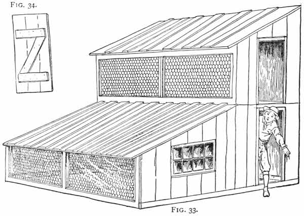 | A Pigeon Loft and Bantam Coop, 55; Lumber, 56; Pigeon-loft Floor, 56; Shutter Frames, 56; Roofing Material, 57; Doors, 58; The Shutters, 59; Cleanliness, 59; The Hen’s Nest, 59; The Pigeon’s Nest, 60; For a Hen Roost, 60; Drinking Troughs, 61; Flying Cage, 62. | |