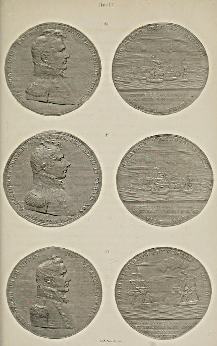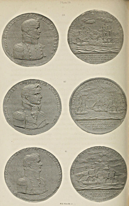 Congress ordered a gold medal (see Plate XIII.) to be struck and presented to “Captain Lewis Warrington, of Virginia, commander of the sloop-of-war Peacock, for the capture of the British brig L’Epervier, Captain Wales, April 29th, 1814.”