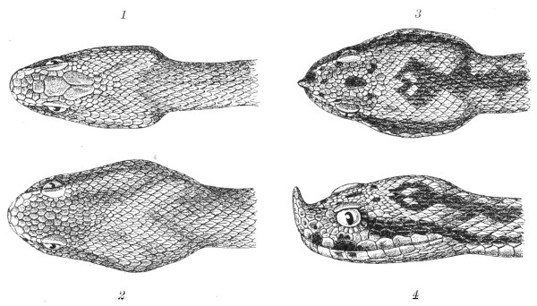 | Fig. 21— | (1) Vipera berus; (2) Vipera aspis; (3) Vipera ammodytes; (4) Vipera ammodytes | 25 |
