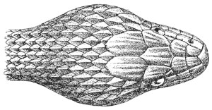 | Fig. 14— | Arrangement of the scales of the head in one of the poisonous Colubridæ (Naja tripudians) | 15 |