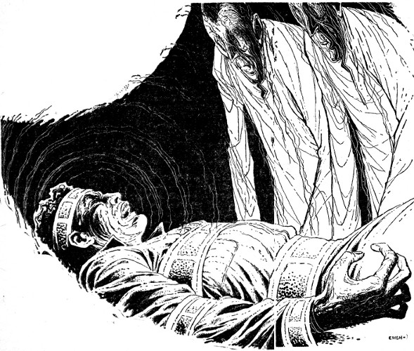 "Insert your right arm into the instrument on the central table," commanded the same voice he had heard before. "Turn your arm until the scratch is in contact with the metal plate. There will be a slight pain, but it is necessary to treat the small injury you have been disregarding."