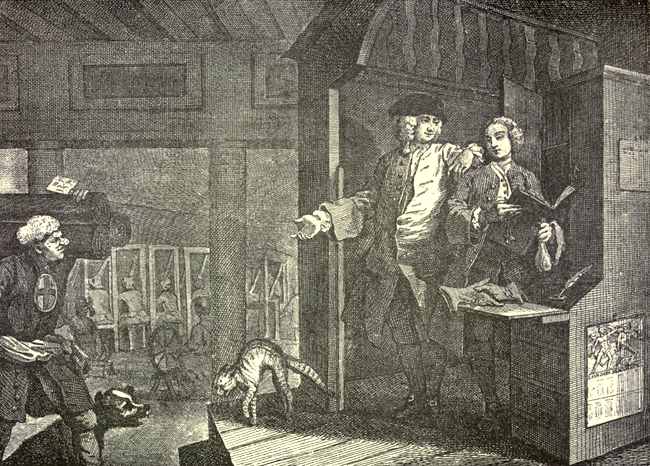 It was fortunate for literature that Doctor Samuel Johnson was not successful in an application for the place of a provincial schoolmaster. It was fortunate for the arts that Richard Hogarth was not able to establish a village school, in which situation he would probably have qualified his son William for his successor; and those talents which were calculated to instruct, astonish, and reform a world, might have been wasted in teaching some half a hundred of the young Westmoreland gentry to scan verses by their fingers, and call English things by Latin names. The fates ordained otherwise; it was his destiny to marry and reside in London, where were born unto him one son and two daughters.