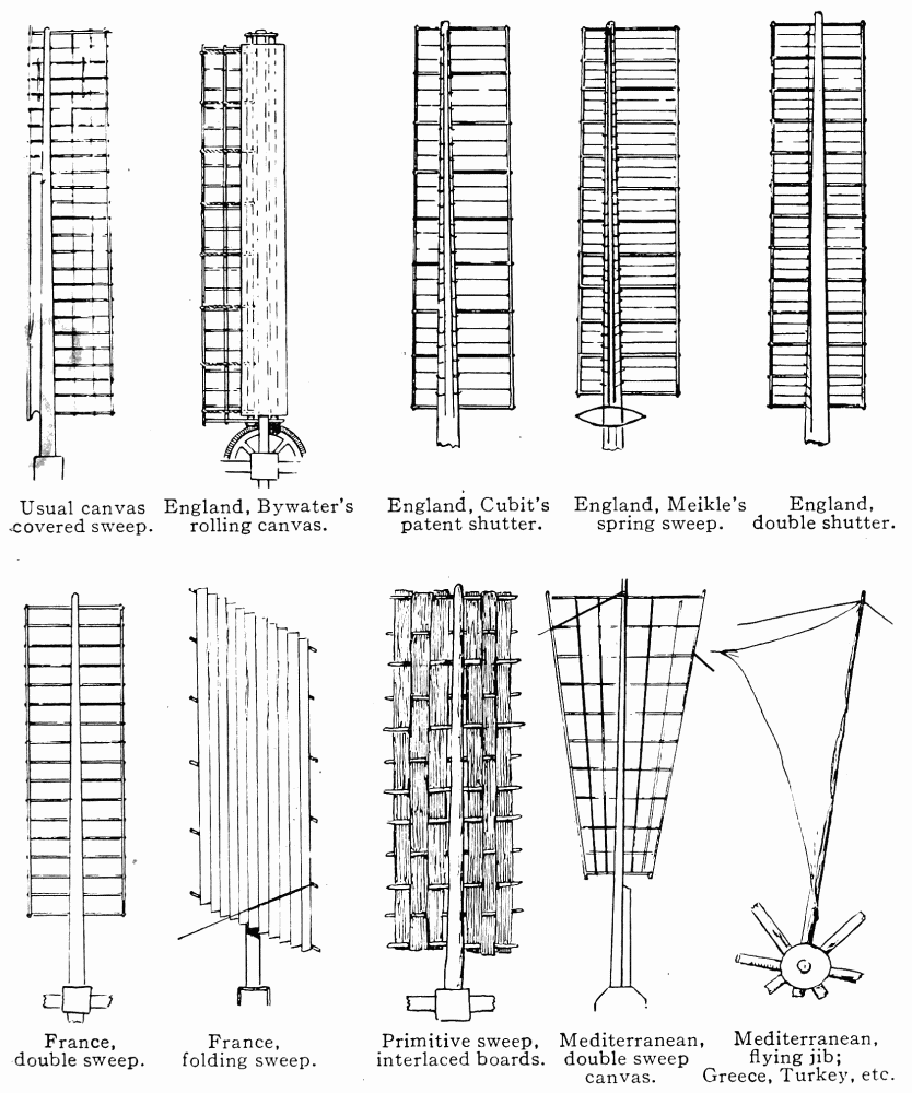 (B) The Sweeps.—With mills built for centuries and by all countries, it is but natural to expect to find a wide range of form in this most characteristic part of a windmill—the sweeps or vanes; and in this one is not disappointed.