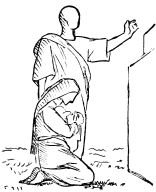 The costume I have suggested as appropriate to{2} the patriarchal age is identical with the dress of the modern Arabs, and there is no doubt that, if not identical, it really was very similar. I think, however, that in painting Biblical subjects we ought to be careful not to carry the similitude too far. I see no objection to clothing Ishmael or any of the tribes of the desert like modern Arabs; but the Jews, even in the time of Abraham, were a peculiar people, and we may very well suppose that they would modify their dress in such a manner as would distinguish them from the wandering and predatory tribes.