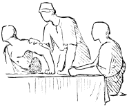The women in the ancient Egyptian paintings are represented in an impossibly tight dress descending to the ankles, but as no female could either walk or sit down in such a garment, we must suppose that the painters of the period did not know how to represent folds and therefore adopted this short and easy way of indicating clothing. This is evidently a case where it would be absurd to follow literally the old authorities. According to Herodotus, this robe was the only garment of the ancient Egyptian women, but there are indications on many of the bas-reliefs that some kind of thin tunic or under-garment was also worn.{6}