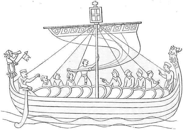 A fate similar to that which the Anglo-Saxons had formerly brought upon the Britons, now partly became the lot of the Anglo-Saxons themselves. The same sea, the North Sea, or, as the old inhabitants of Scandinavia called it, “England’s Sea,” which in the fifth century had borne the Anglo-Saxons to England, and which had afterwards served to maintain the peaceful connections of trade, and the intercourse between kinsmen in England and in their northern fatherland, now suddenly teemed with the numberless barks of the Vikings, which, from the close of the eighth century, constantly showed themselves in all the harbours and rivers of England. For about three centuries the Danes were the terror of the Anglo-Saxons. They generally anchored their ships at the mouths of rivers, or lay under the islands on the coasts. Thence they would sail up the rivers to the interior of the country, where they frequently mounted on horseback, and conveyed themselves with incredible speed from one place to another. Their frightful sabre-cuts resounded everywhere. Their progress was marked by the burning of churches and convents, castles, and towns; and great multitudes of people were either killed or dragged away into slavery. In a short time they began to take up their abode in the country for the winter, and in the spring they renewed their destructive incursions. The terrified inhabitants imagined they beheld a judgment of God in the devastations of the Vikings, which had been foretold in ancient prophecies.