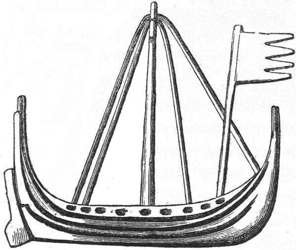 The Norwegian, who had now become skilled in navigating his ship through the mountain waves of the Atlantic and the far more dangerous surfs on the rocks of Norway, no longer dreaded the open sea. When the population had increased to such an extent that the Norwegian rocks could barely afford it a sufficient maintenance; when the reports concerning the rich lands beyond the sea, and their defenceless condition, promised at once renown and booty; and when, lastly, Harald Haarfager’s conquests threatened the Norwegians with the loss of their freedom—then thousands of vessels shot out from the fiords of Norway, and steered dauntlessly for the neighbouring western islands. A northern life, and the severe winter’s cold, had not only braced the body of the Viking to endure all kinds of hardships, and given him strength to wield the sword with effect; it had also steeled his courage, and taught him fearlessly to face all manner of danger. The clear starry firmament of the North enabled him to observe the course and relative situation of the stars, which were then the only compass by which he steered his ship towards foreign and unknown shores.
