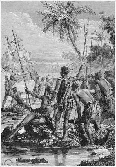 Le 1er février, il mit en mer une embarcation pour aller à la découverte d’un mouillage. Tandis qu’on attendait son retour, on aperçut un grand feu sur le rivage. Quelques vaisseaux espagnols ou français avaient-ils atterri en cet endroit? Faudrait-il livrer combat, pour se procurer l’eau et les vivres dont on avait besoin? Toutes les dispositions furent prises pendant la nuit; mais, au matin, aucun bâtiment n’était en vue. Déjà l’on se demandait si l’ennemi s’était retiré, lorsque l’arrivée de la chaloupe vint fixer toutes les incertitudes, en ramenant un homme vêtu de peaux de chèvres, à la figure encore plus sauvage que ses vêtements.