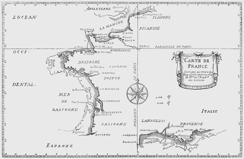 Les premières observations de Cassini et de La Hire amenèrent ces deux astronomes à resserrer la France dans des limites beaucoup plus étroites que celles qui lui étaient jusqu’alors assignées.