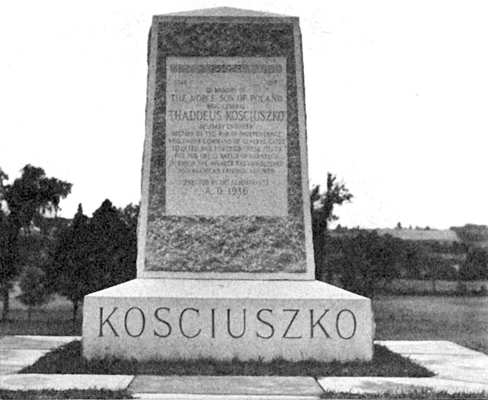 The monument on Bemis Heights to Thaddeus Kosciuszko, Polish military engineer who selected and fortified the American lines at Saratoga.