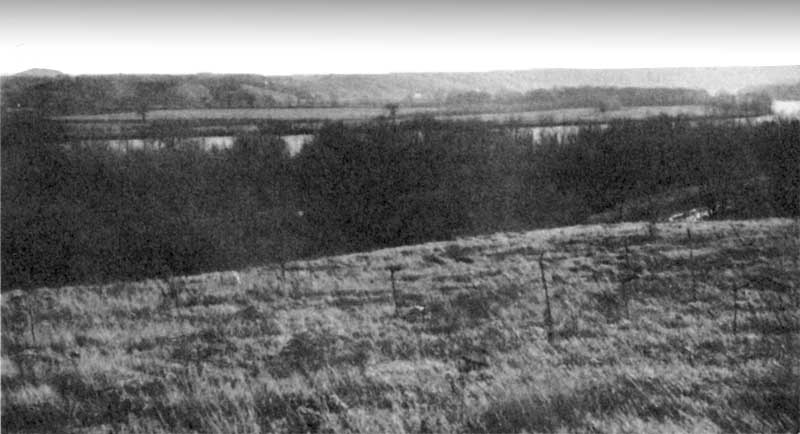 View northeast from the American river batteries, showing how American cannon dominated the narrow river plain and road at this point.
